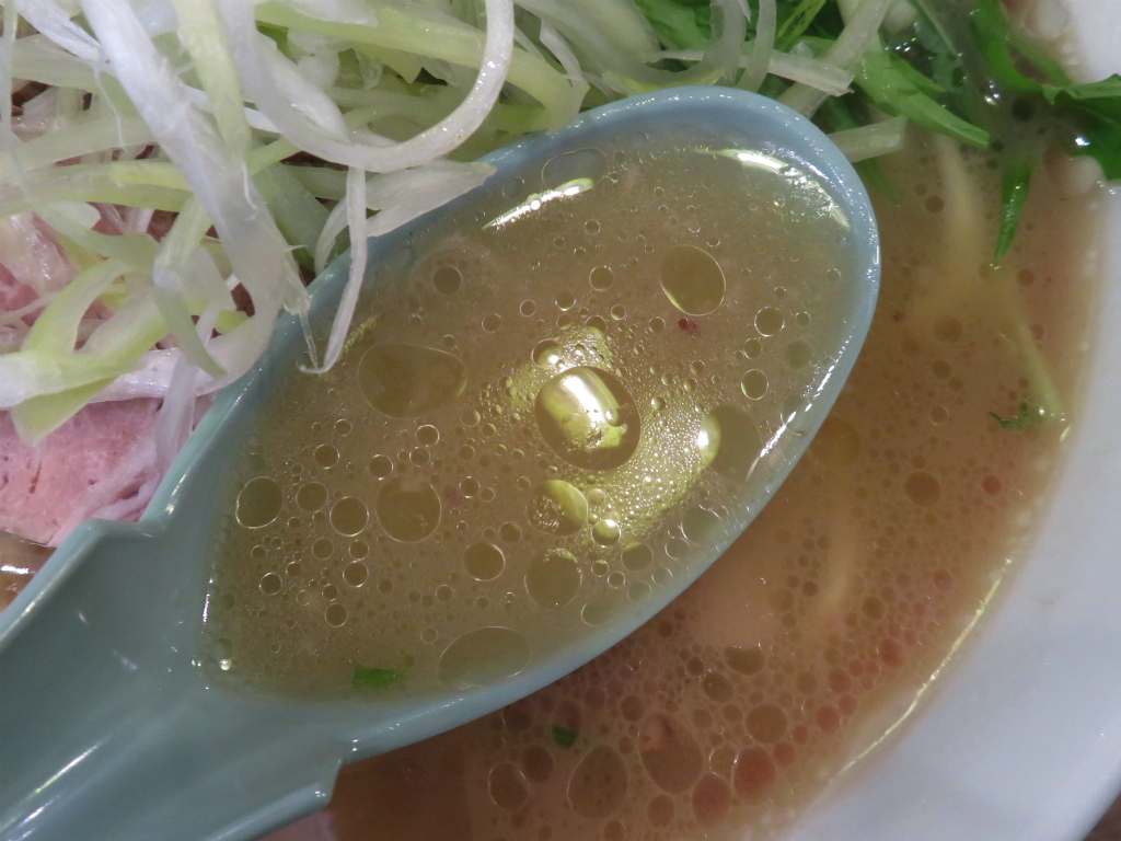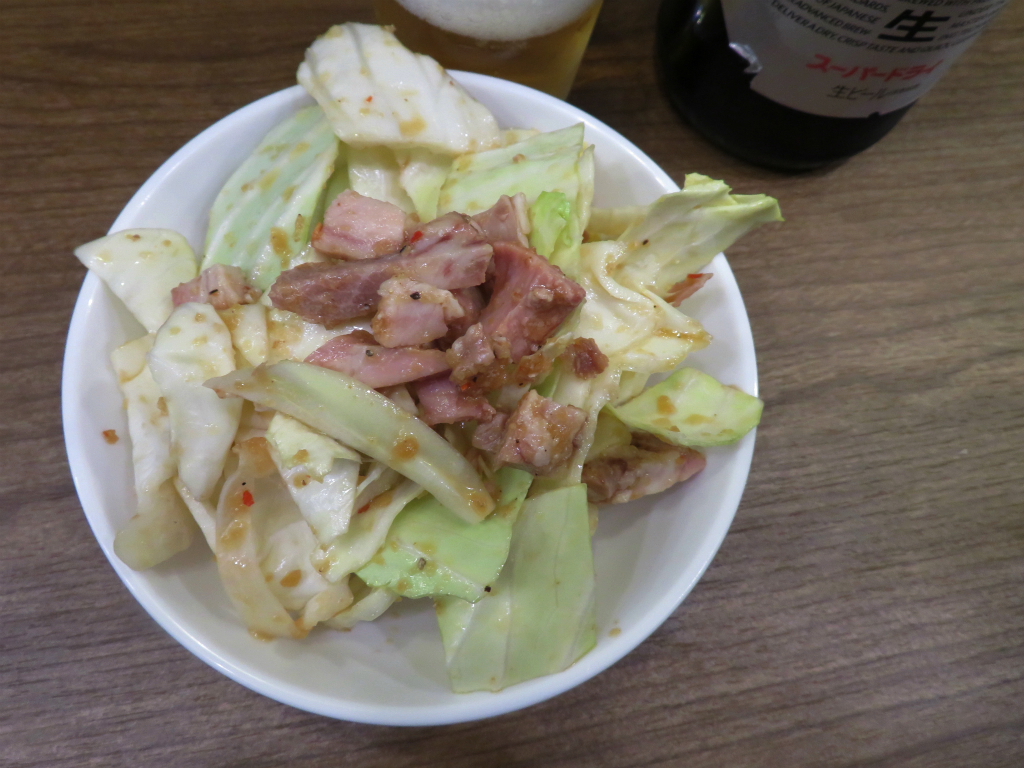 さて、「あご塩ラーメン」。こちらも まあまあどころかバチバチやるタイプ。キャベチャーがあれば自然と二本、傾ける杯数。