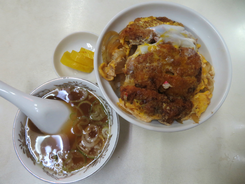 そんな調子で肉天 a.k.a. 豚唐揚げ、餃子。BFFを並べたら米か麦で受け止めなければやってられないので、本日も元気に地元のパイセンと客単価向上委員会を発足。おう、14:00から発注可能というカツ丼は きっとご飯少な目じゃないですゼ。