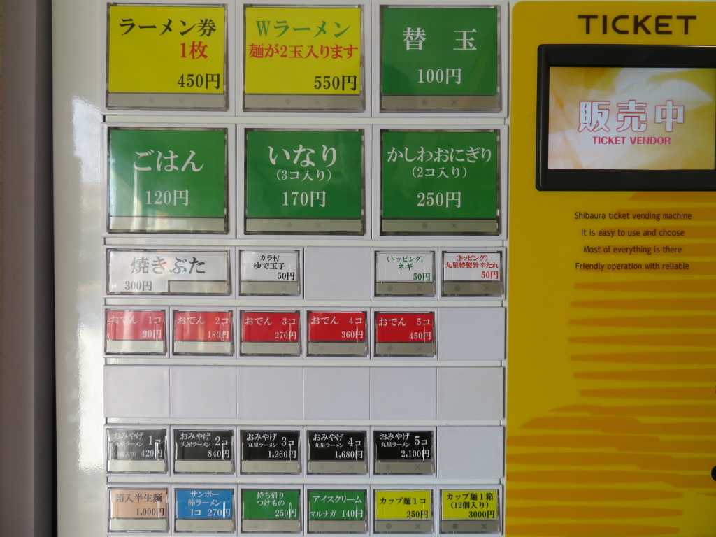 まるでスポーツ名鑑でも手にしたんじゃないかって、それくらいレジェンドオブ伝説な豚骨ラーメン店にようやく到着で入る入口(前回は定休日)。直ぐ左手、朝から二台稼働している券売機や、普段使いの老若男女がスティルを物語っていますゼ。