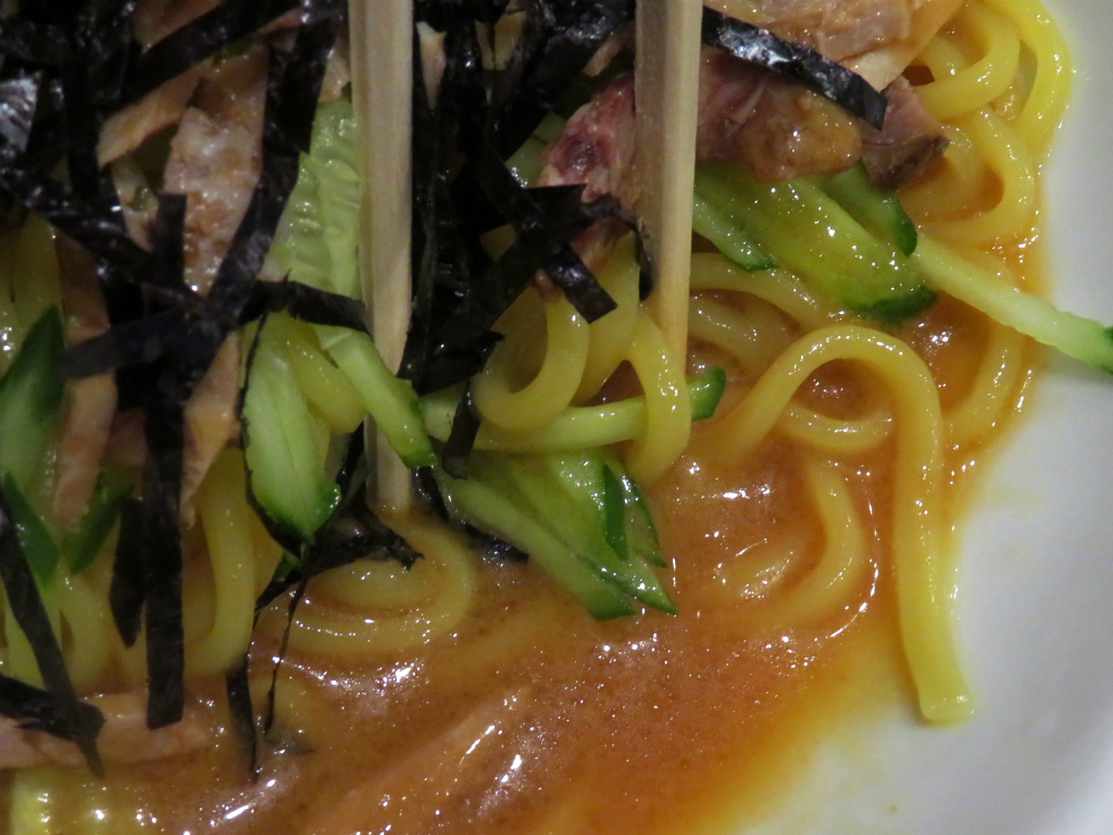 さて、「焼豚冷麺」。ハムと焼豚だったら、くらいで後者に決まってんじゃんって、チャーシューおじさん インダビルディング。