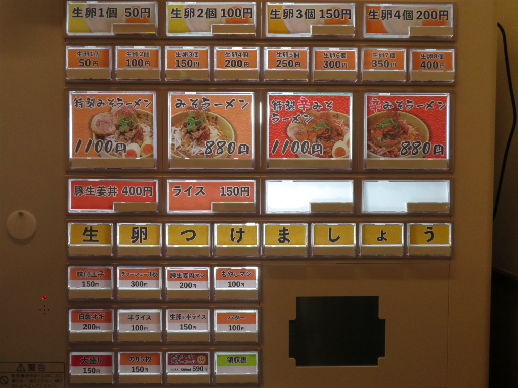 ■注文:辛みそラーメン(¥880)、生卵2個(¥100)