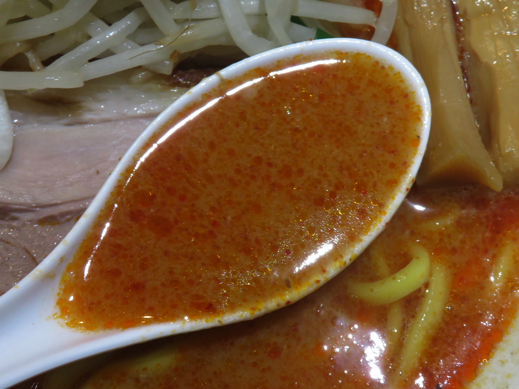 さて、「辛味噌ラーメン」。初日から ほぼほぼフルラインナップという品揃えも流石の一言。これこれ、瞬く間になる 汗達磨。