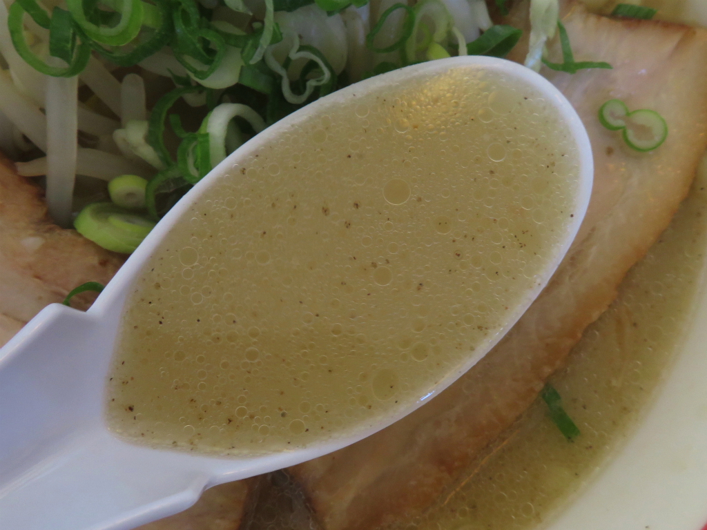 さて、「ラーメン 中」。硬めの極太麺150g、胡椒のアタック、もしかしたら 一連のやり取りで錬金されたかも知れないスープ。
