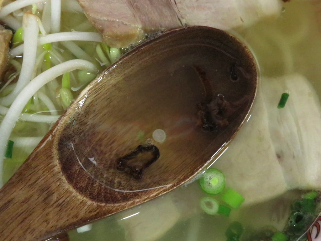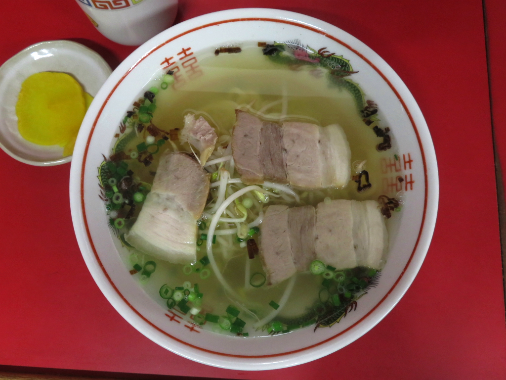 さて、「ラーメン(中)」。温かいお茶を飲みながら、お茶請けの沢庵をパリポリ弾けさせる時間はそろそろ魔法が解ける頃。