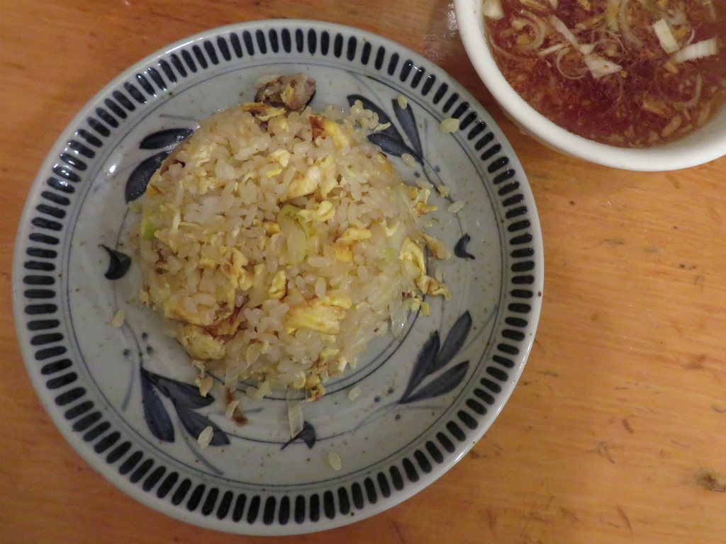 さて、「ラーメン」。食事中にラストオーダー言われたのでついつい炒飯を追加で注文。半があるのがいい、半があるのが。