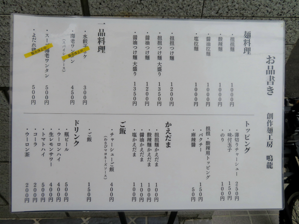 創業は2012年(平成24年)、華美な経歴を持つ 店主齋藤一将氏による担担麺と拉麺の専門店。 「創作麺工房 鳴龍」。