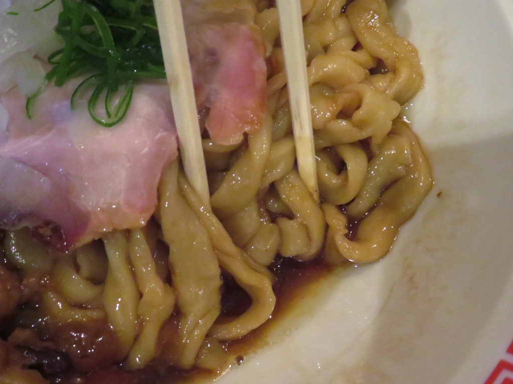 さて、「もち小麦油そば」。ニンニクもトッピングなし。自分が思っていたより、確りHeavy D & the BoyzよろしくOverweightで。