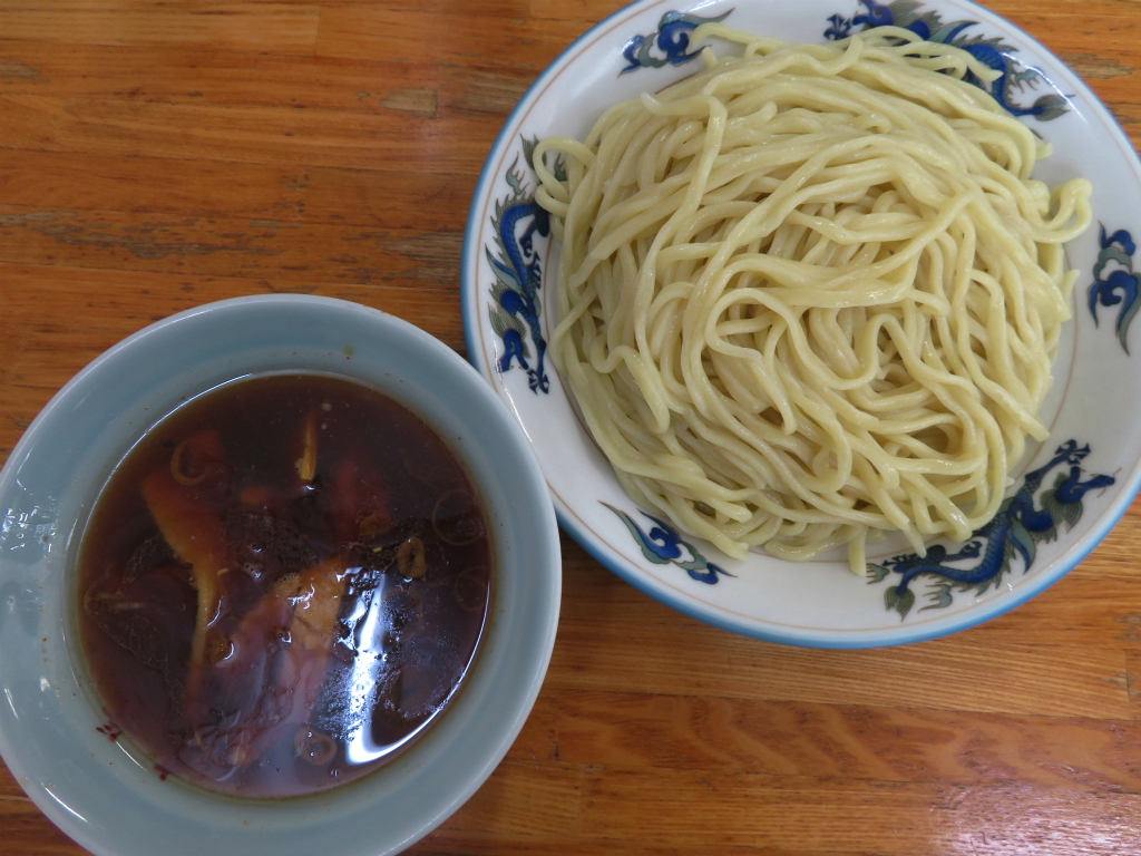 さて、「つけそば」。ロット毎に茹で湯を替える丁寧な仕事も好き。そうだ、今度は具増しにしようと思っていたの忘れてた。