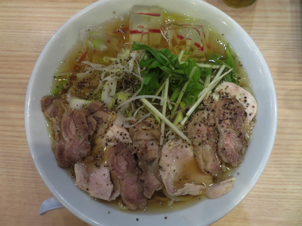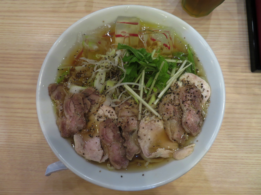 さて、「鶏醤油」。一口含むと山形へ、涼しい避暑地へ。ハイパースペースでジャンプしちゃうような鳥中華的な淡泊な感覚。