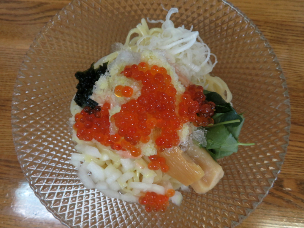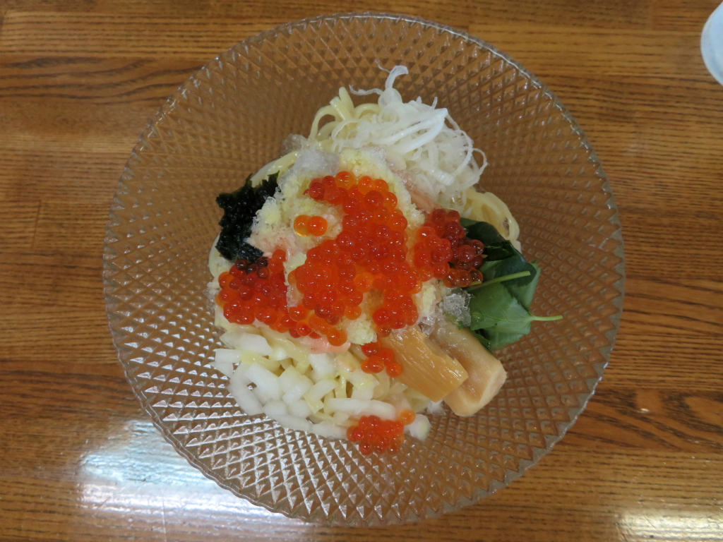 ■注文:サーモンとイクラの山葵カキ氷和え麺~ご飯割付~(¥1300)