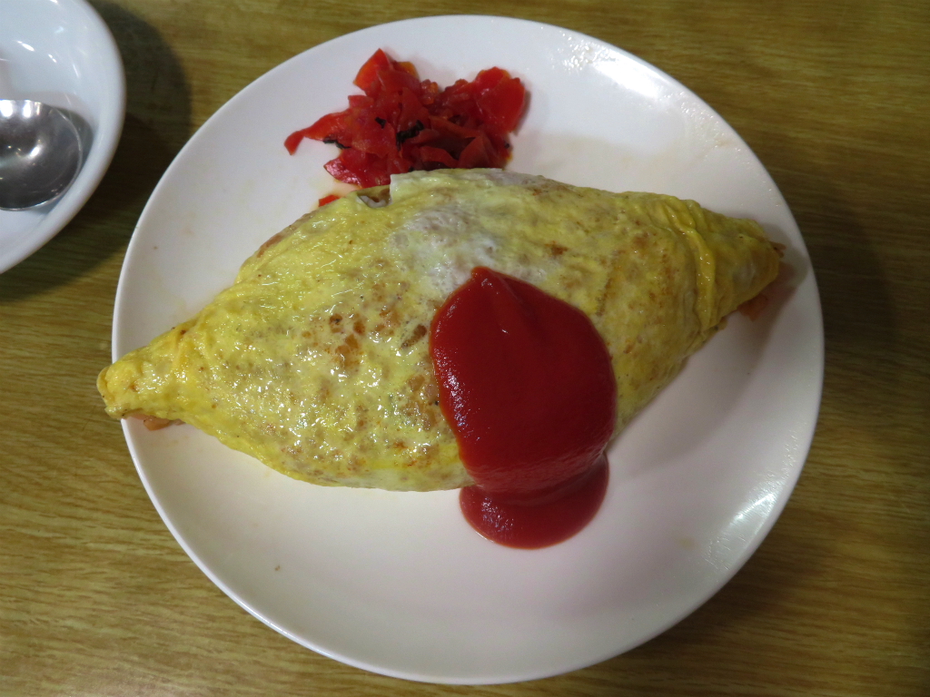 さて、「ラーメン」。旧交を温めながら頼む名物のオムライスがこれ、ユーマよろしく世界を獲れるんじゃないかってレベルで。