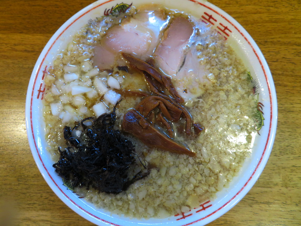 さて、「背脂煮干中華そば」。麺やわらかめ、背脂大あぶらが今夜の気分。昼の餃子と夜の中華そば、中毒性はイーブン。