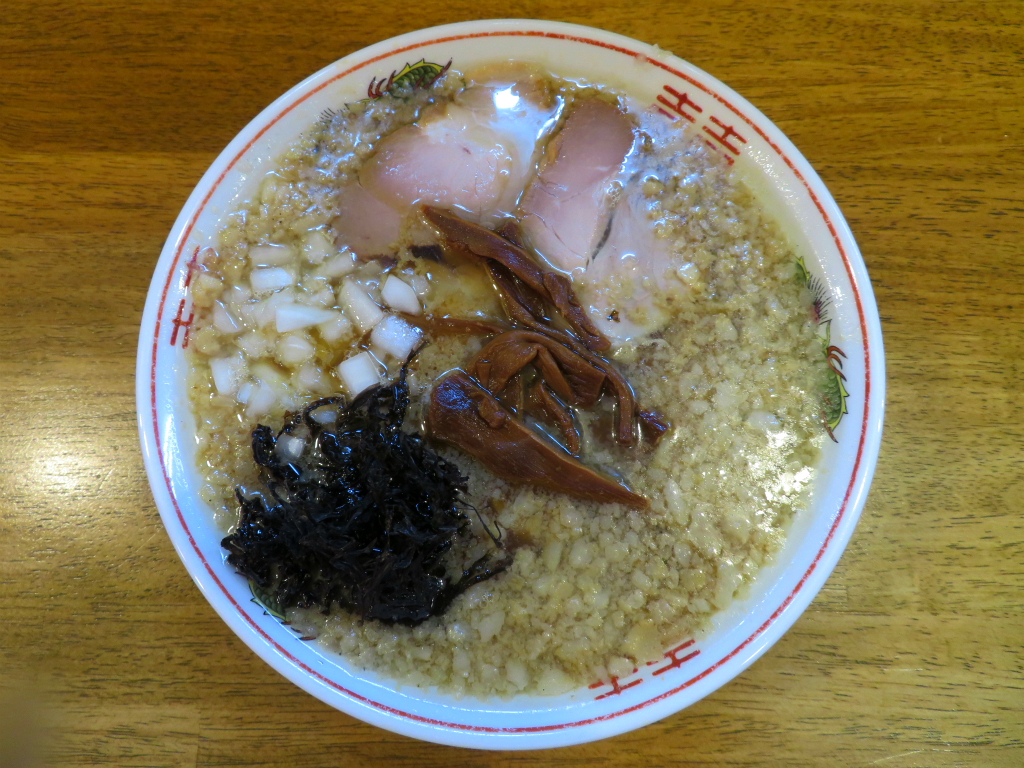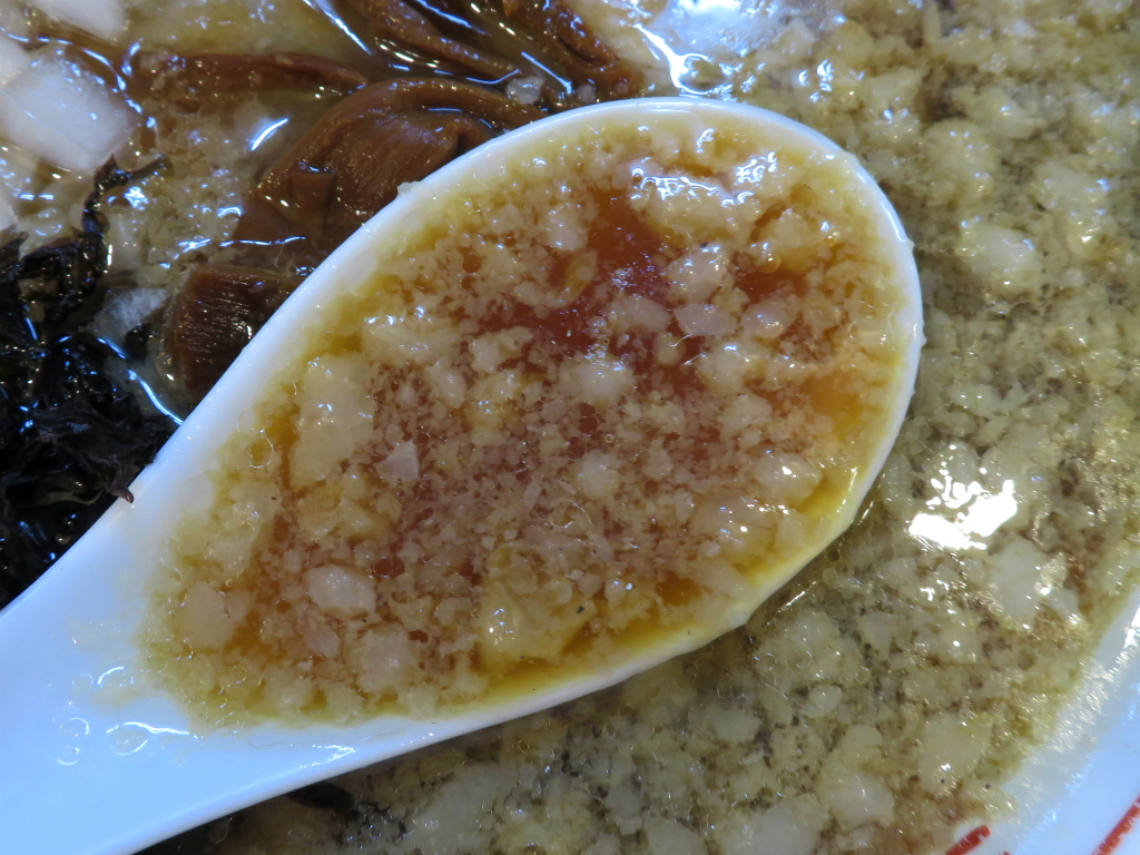 A看板によれば越後新潟もち豚使用。迫る背脂の旨みマックスと生姜のパンチ力ってな具合にええ、そんな昼から夜が更けてもバックファット・ジョー。そう、若手たちと交流を図った後は、ラーメンで〆たい、なんてそんな気持ちに付き合いますゼ。