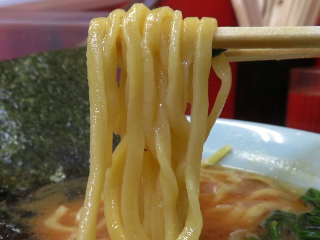 さて、「ラーメン(並)」。麺やわらかめ。やわらかめのお客様は時間いただきますって、物が分かる人はこの茹で加減よい。