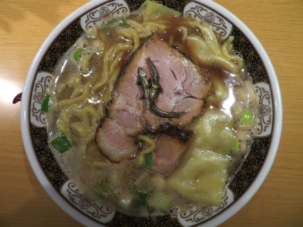 さて、「煮干ラーメン」。久し振りだから欲張って中盛り。好みで茹で時間は5分を指定、海の辛銀だれは抜き。やっぱり好き。