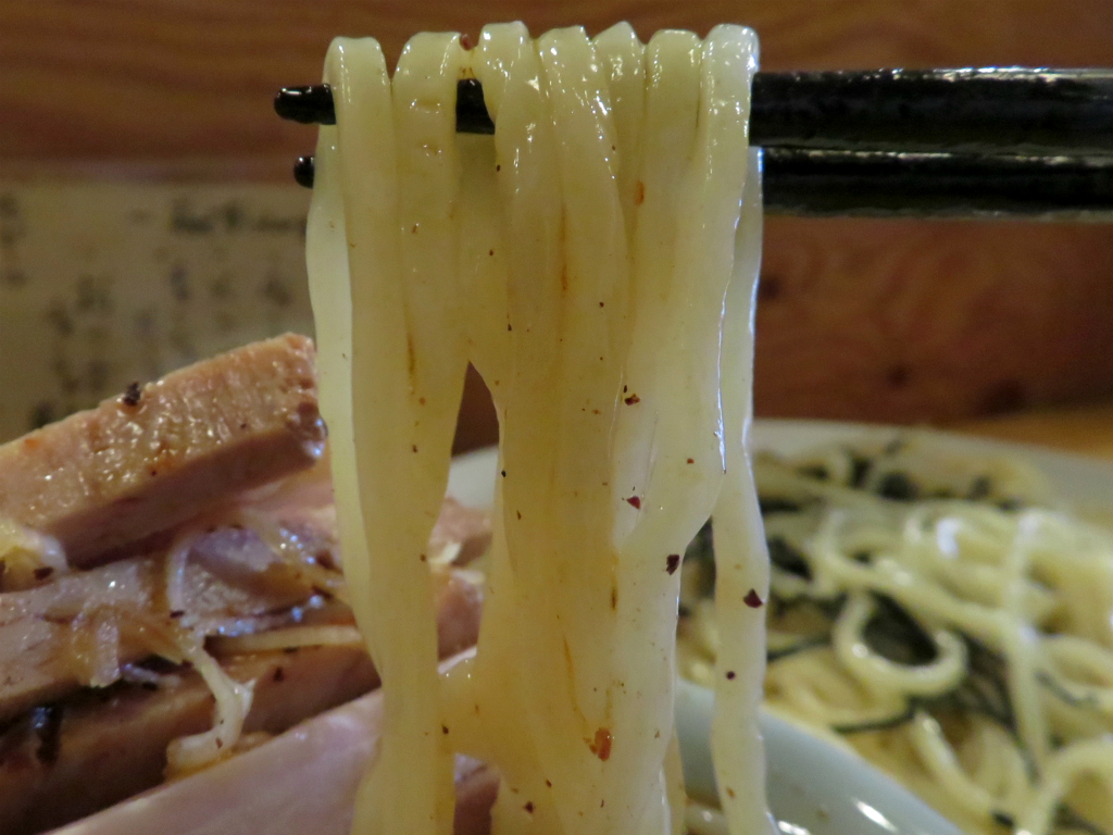 さて、「チャーシューつけそば」。赤身のチャーシュー a.k.a. ジェンガを見知り、ミシリと嚙み締り咀嚼。脳内パズル オブ土着。