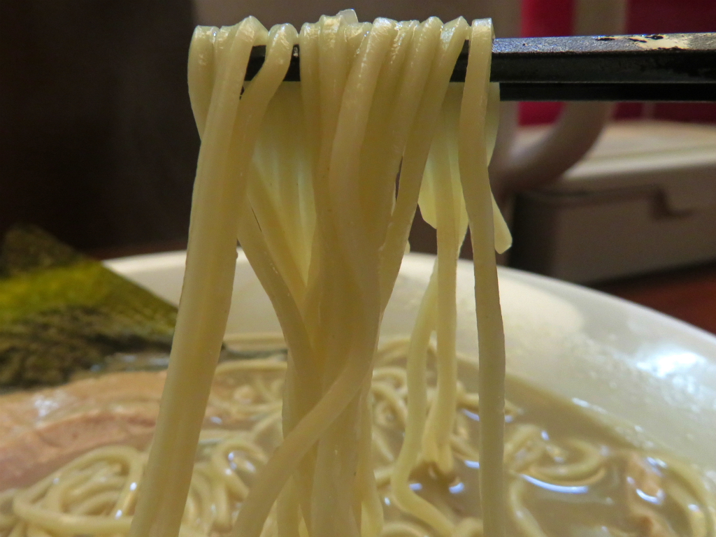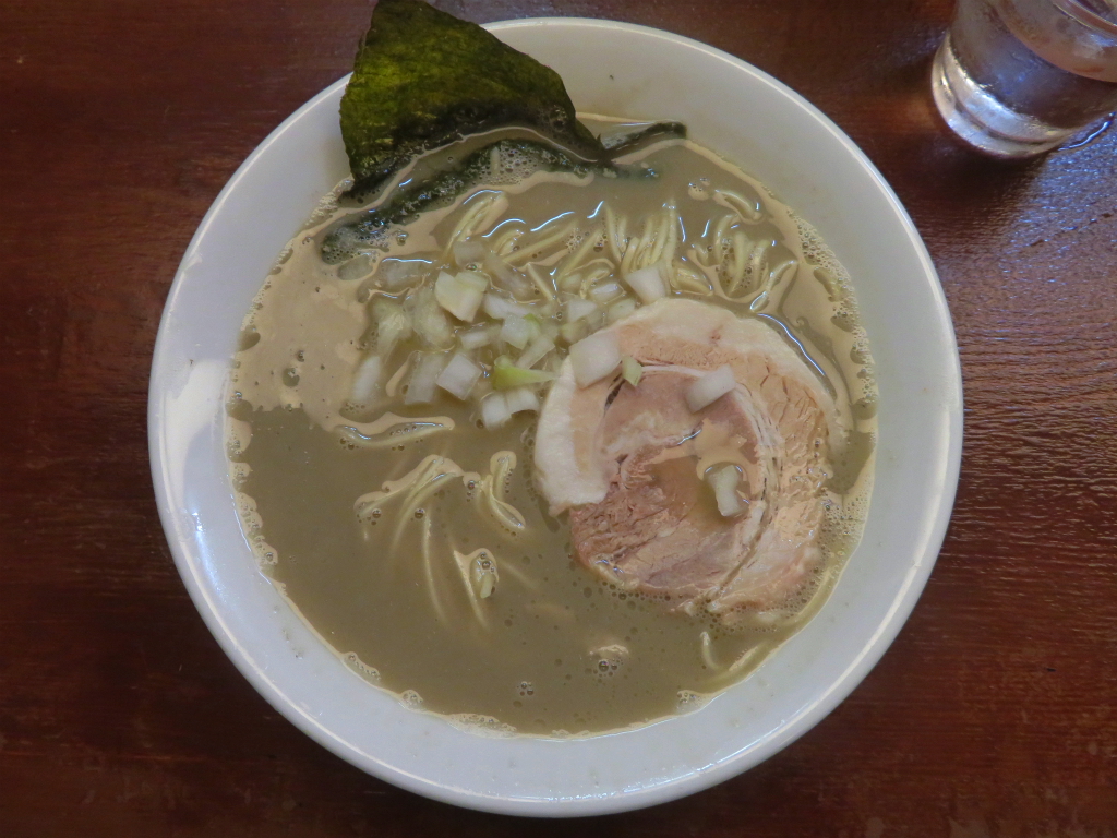 さて、「白湯煮干しそば」。この土地でこの組み合わせ。足踏み鳴らせって勿論武器はダメだけど、硬茹で細麺って 珍重。