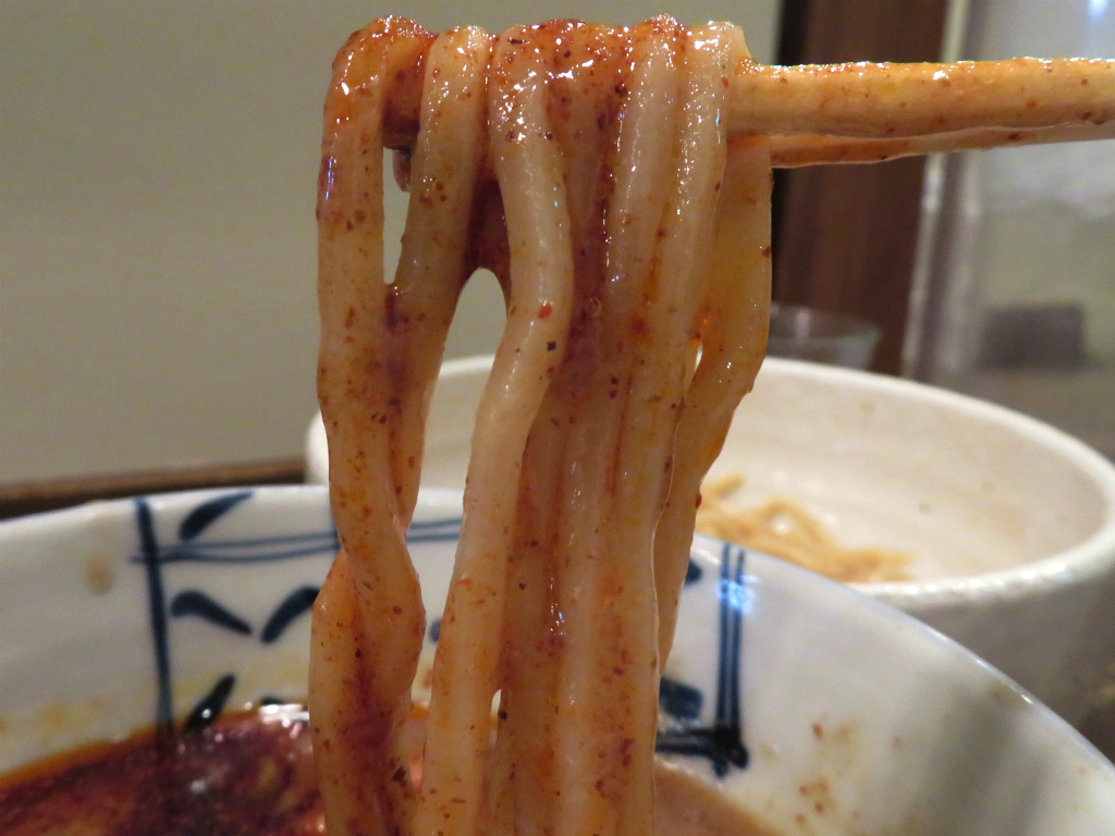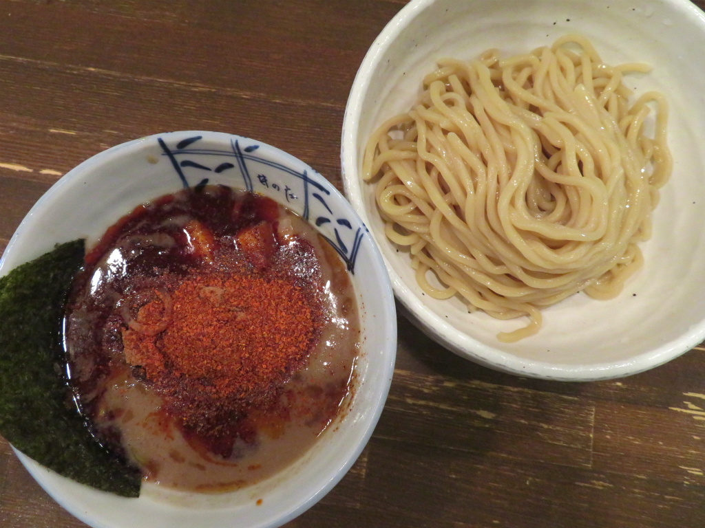 さて、「辛辛魚つけめん」。次回も頼むなら太麺に変更択一、そしてやわらかめが確実なんて押韻だけはいつでもカタメに。