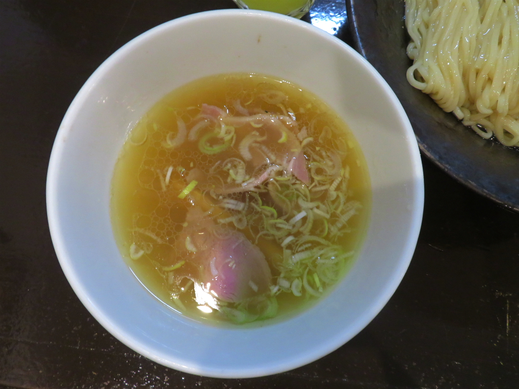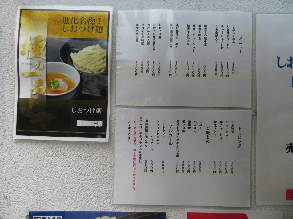 さて、「しおつけ麺」。改装を経て ブランドニュー駅前店。いつもさ、汁つけずに そのまんま半分くらい食べちゃうんだよな。