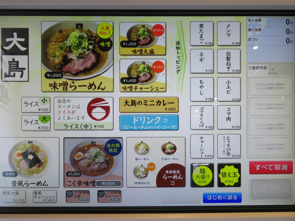 最寄は船堀駅、札幌の味噌ラーメン「すみれ」出身の店主大島剛史氏による人気店。創業2013年(平成25年)、「大島」。