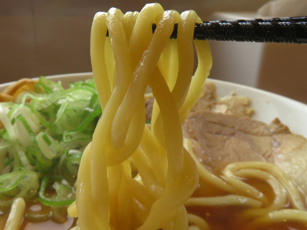 さて、「中華そば(中)」。麺は太麺。津軽ラーメンに背脂は要らないって某店主の教え通り、背脂はなしでギュインギュイン。