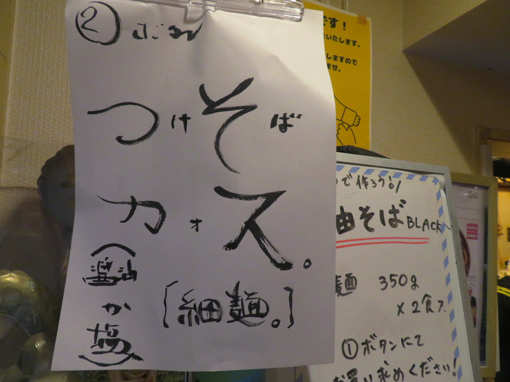 さて、「つけそばカオス(塩)」。どんな曲って今宵はオジロ。エリアじゃなくてエリアだったけど、このあたりの店じゃここが。