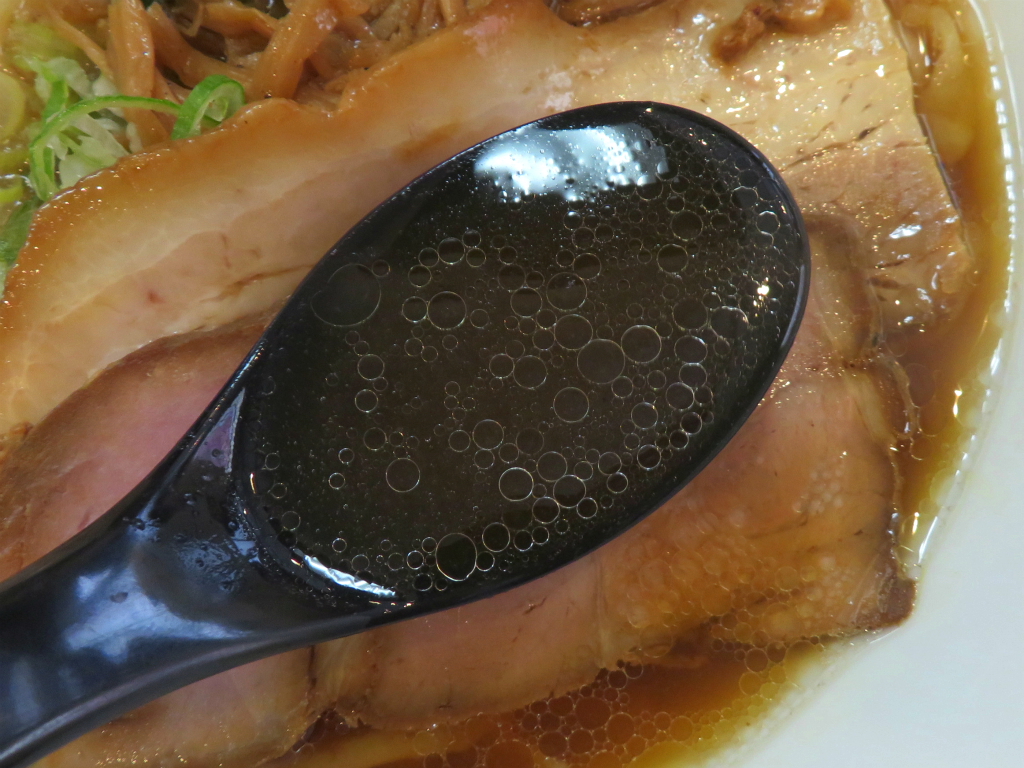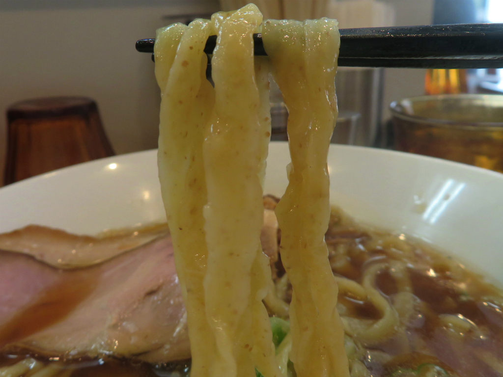さて、「醤油らーめん」。大盛は別料金になったが、今も尚 並盛と中盛は同料金。この金色の自家製麺とこのペンで大掃除。