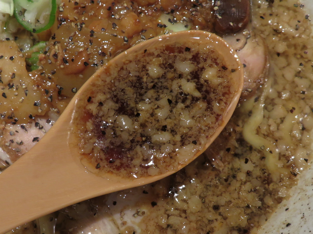さて、「ラーメン」。コールはニンニクなし、(味付き)背脂。ジャンクな一杯に合わせるのは、不死鳥カラス氏謹製のインフィニ。