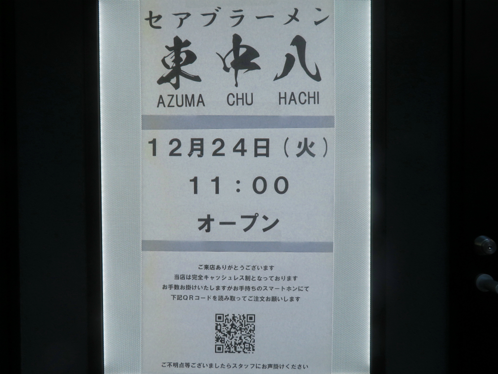 二代目店主宮本堅太氏による人気店「東京スタイル味噌らーめん ど・みそ」の新しいブランド。「セアブラーメン 東中八」。