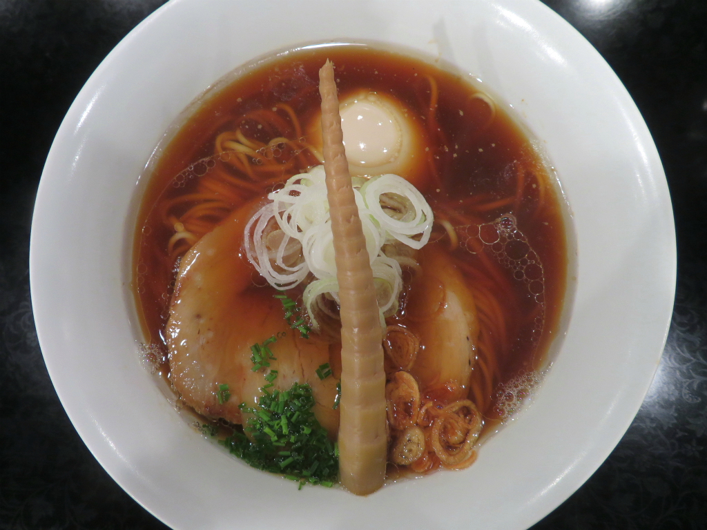 さて、「醤油拉麺」。ドンと象徴的な 姫竹を口に含む瞬間を計る。いちにょっき、ににょっき、さんにょっきって 言いたいだけ。