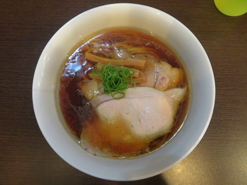 さて、「醤油らーめん」。ほぼほぼ昆布水の中、あっちを向いて座ってその時を待つのは醤油おじさん。一辺倒からの卒業。