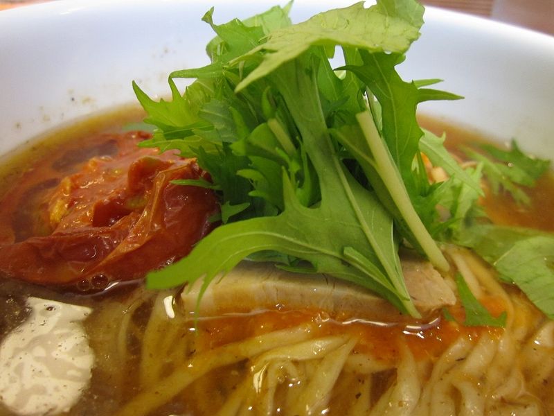 また、ラーメンだと具は水菜、叉焼のみ、食べ盛りで物足りない方には特製がオススメです(・∀・)ノ ヨ 私は控え目にローストトマトを単品トッピングしましたが…コレが20mm超えの分厚いモノで超ジューシー!超正解!