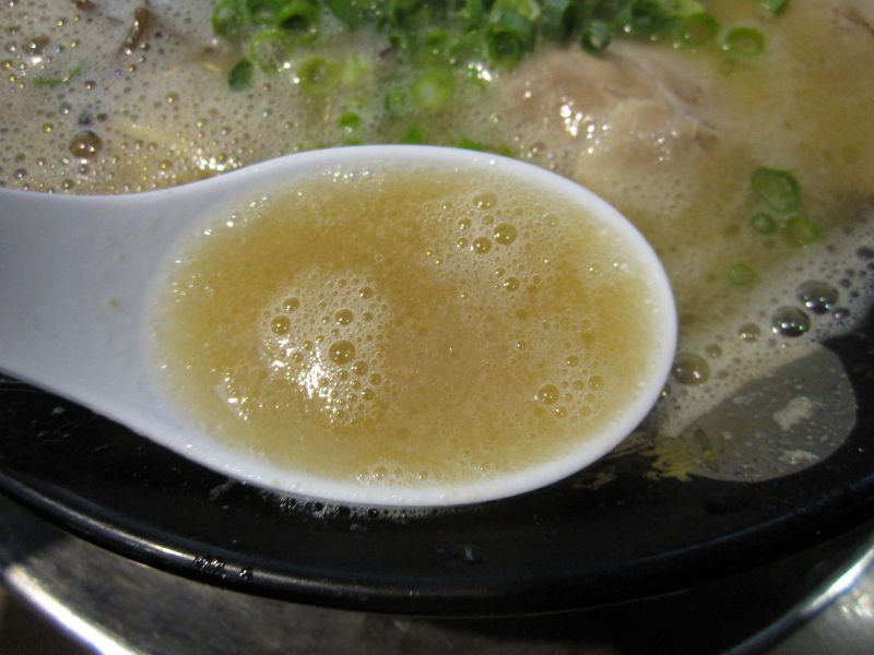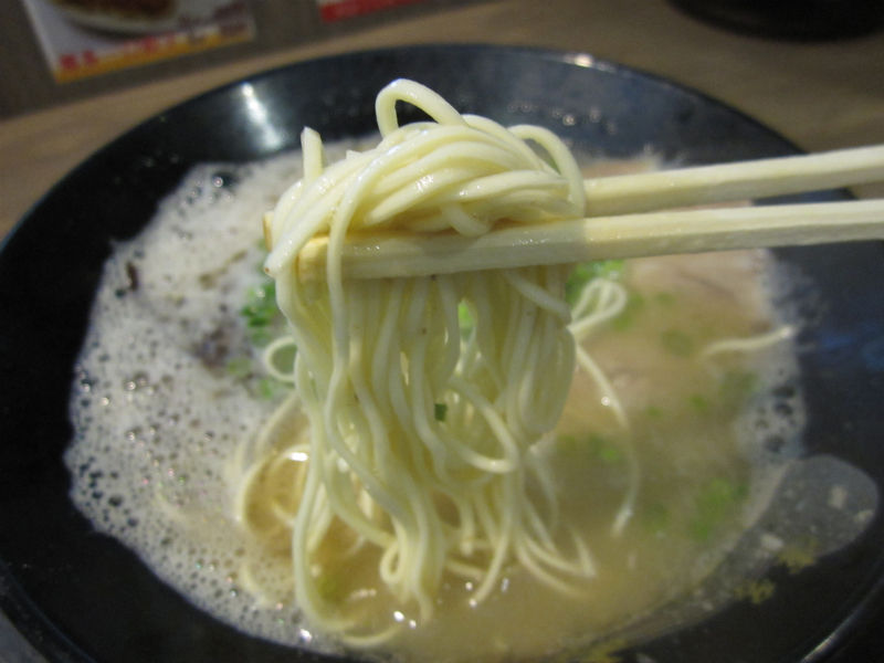さて、見た目の泡立ち具合は、レペゼン伊太利亜のカプチーノ的な様相。ああ…ライブ・オン・ダイレクトな豚骨スメルに、どんどんズキズキ刺激されちゃう私のリビドーとストマック(*ノ∀ノ)キャッ そんなスープは微弱なとろみを含ませていますが、昨今の濃厚とは一線を画したヤリ過ぎない博多顔。
