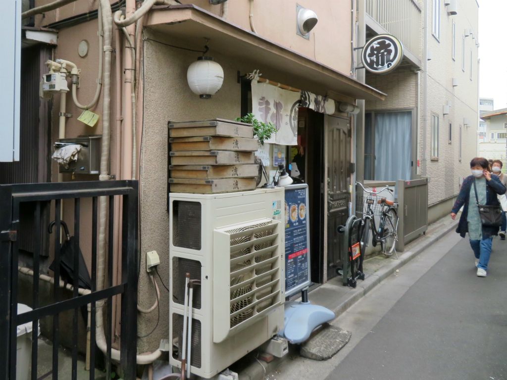 十条駅の線路沿い、煮干しと自家製麺の人気店。創業2014年(平成26年)、店主 手塚勇佑氏による「煮干そば 流。」。