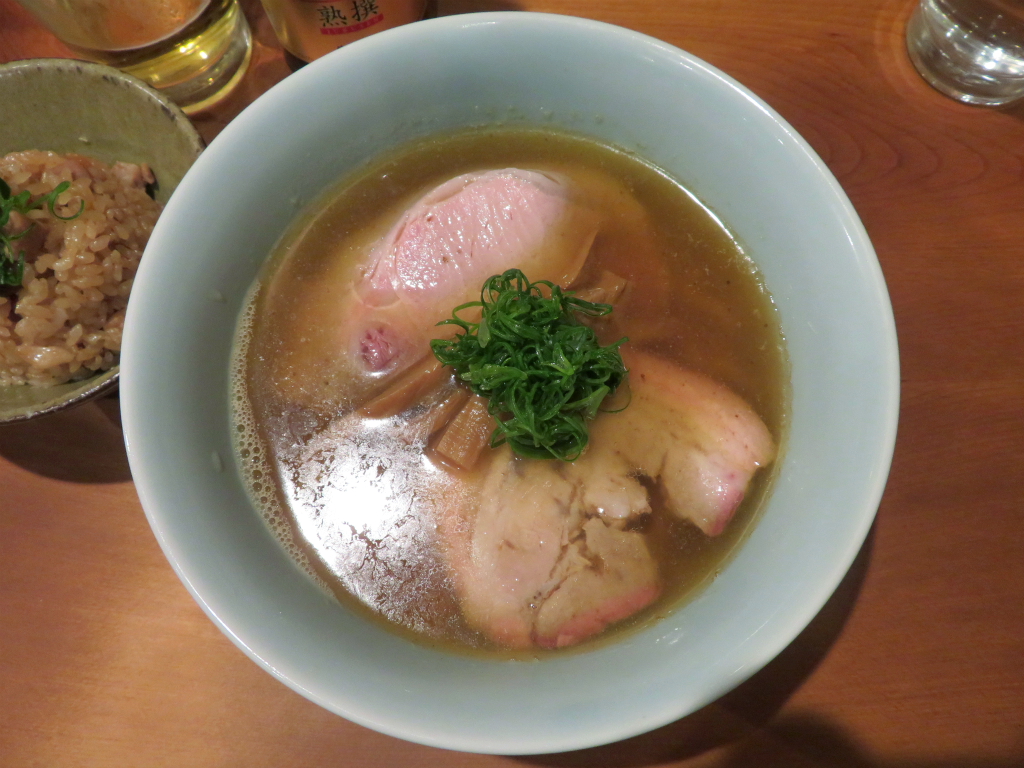 ■注文:煮干しそば(太麺)(¥1200)、炊き込みご飯(¥200)、ほか