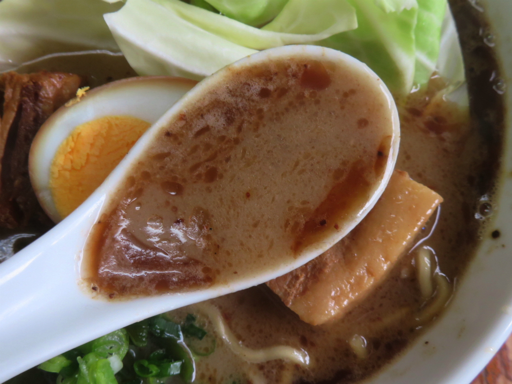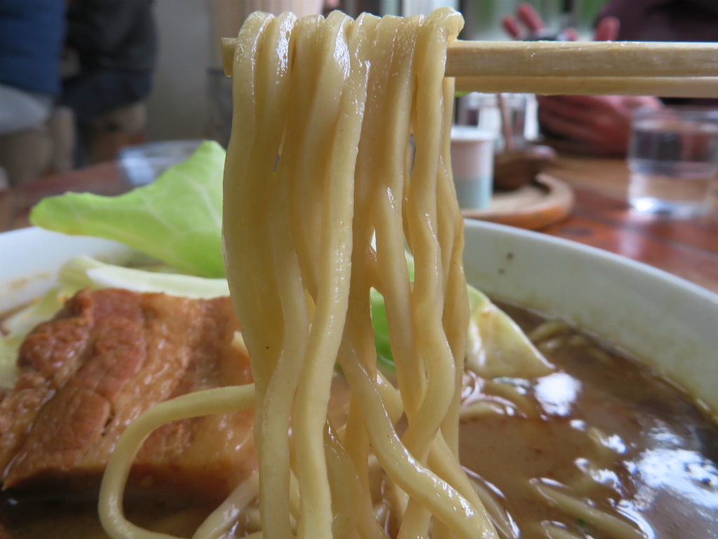 さて、「ブッダガヤらーめん」。自家製麺だったかしら、このニオイはスープ由来じゃなくて麺由来。それらを含めて、愛してる。