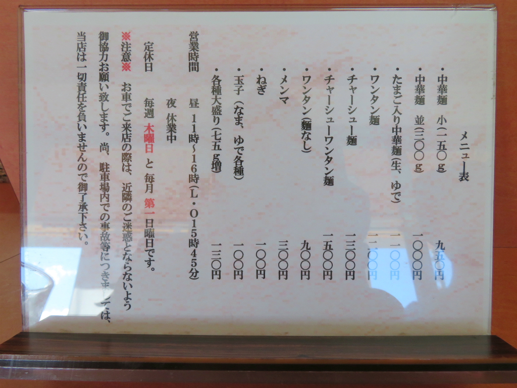 ■注文:中華麺 小(¥950)、ほか