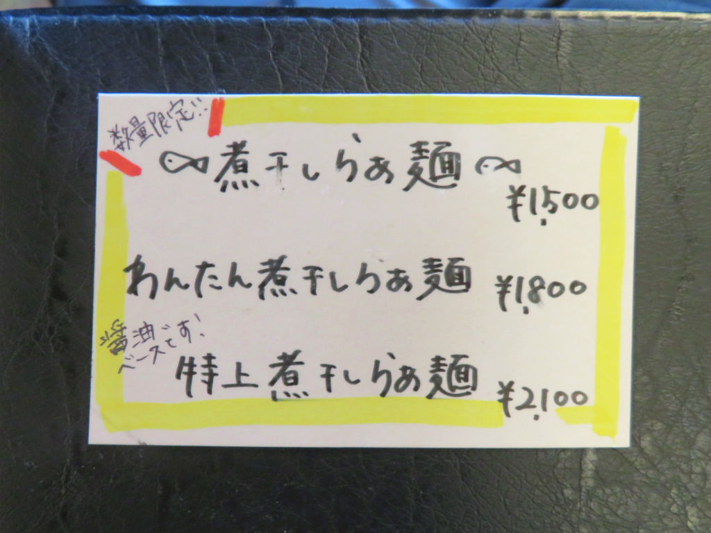 ■注文:煮干しらぁ麺(¥1500)、ほか