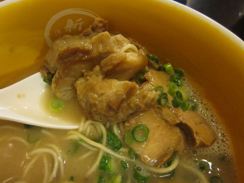 「新風麺」「純豚骨」「和風豚骨」の三種類のバリエーションが用意されていますが、ベースのスープを味わいたくて、今回は「純豚骨」をチョイスヽ(・∀・)ノ ワーイ
