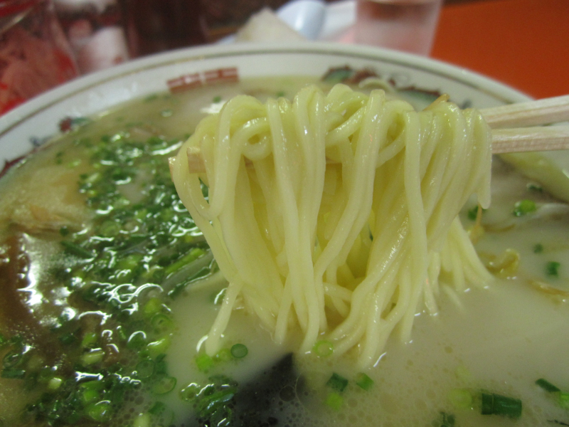 さて、まるでミルクのように滑らかで円やかな白濁豚骨スープ、そこに何とも芳ばしい風味が乗り込むことで唯一無二の味に仕上がっております( ゚Д゚)ンマイ 芳香の主因は胡麻油?ラード?何れにしても油を焦がしたような独特な香味が甘いベースの上で一癖も二癖も個性豊かに膨らみ、ありそでなさそな表情を作りながらマイタンへ着地。