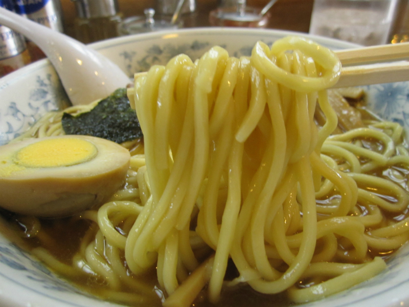 微かに有する豚のオイニー、舌に絡まるコラーゲン的なトロミー、煮干や鯖節など魚介のフウミー、醤油や白による過ぎちゃうウマミー。なんて、サラリとしながらも確りとボディのある古典的なスープは、レンゲループに値千金ですゼ。