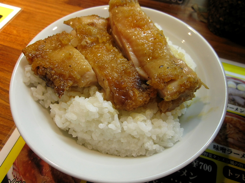 それにしても鷹の爪的メガ唐揚げがパなくて、いやむしろピないがゆえに思わず注文しちゃったライス。うん、野菜時々メガ唐揚げで組むルーティン。具のキクラゲを弾かせつつ、味付け玉子を頬張ったらアッと言う間に汁完の運びですゼ。