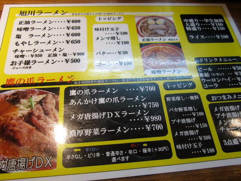 ■注文:メガ唐揚げDXラーメン+味付け玉子(¥980+¥100)、ライス(¥100)