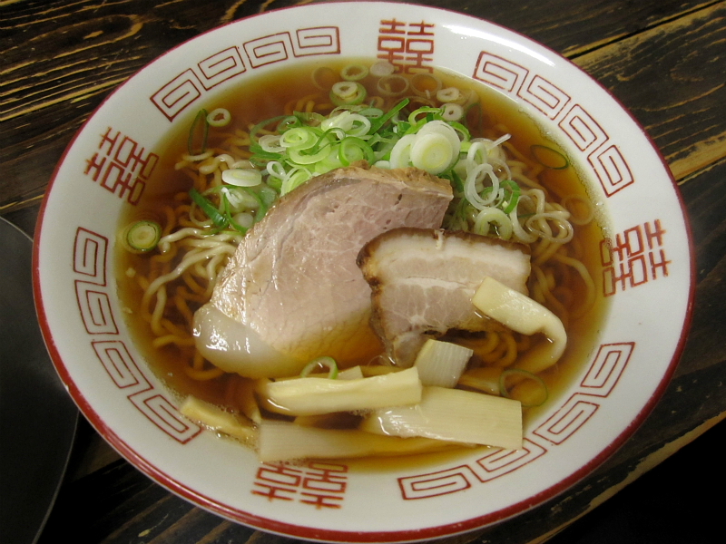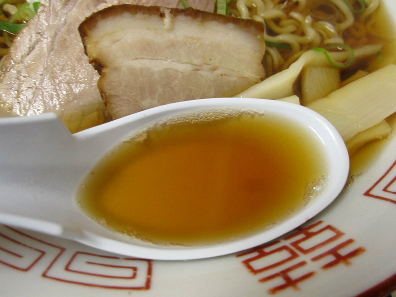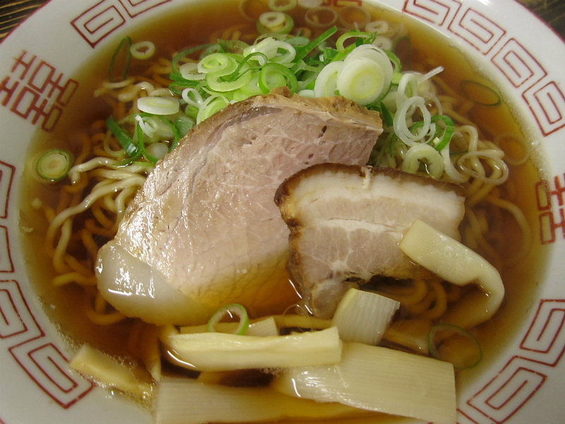 そうは言っても決して悪い意味はなく、煮干が程好く効いた本州最北端スタイルをゆっくりと味わいますゼ。二種叉焼、メンマ、ネギという陣容。中太麺は艶やかな肌質が印象的なモチモチ麺・・・は無カン水?低カン水?何れにしてもイイネ。