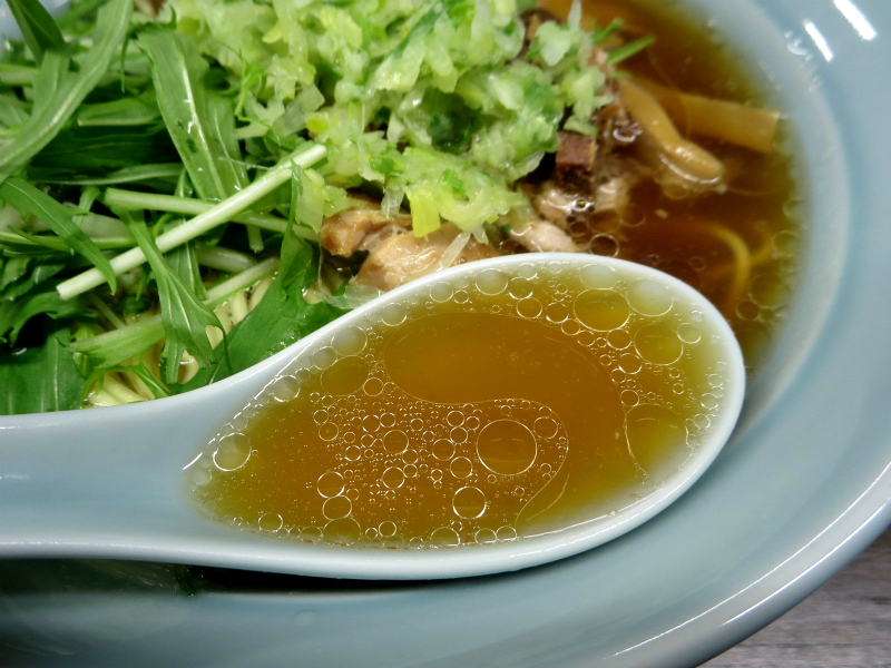 国領駅前の再開発に伴って移転が決まって、駅近に熊王ビルヂングを建設しての再開とか・・・誰もが掴みたいラーメンドリームの話は置いといて「しょうゆラーメン」の話。さて、生姜スメルぷんぷんの油膜の下層には豚清湯、甘露な醤油。