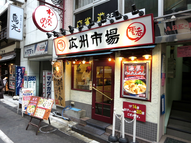 わんたんめんが絶品のラーメン店(自称)が、五反田の本店を含めて都内に五店舗を構える庶民の台所「広州市場」。