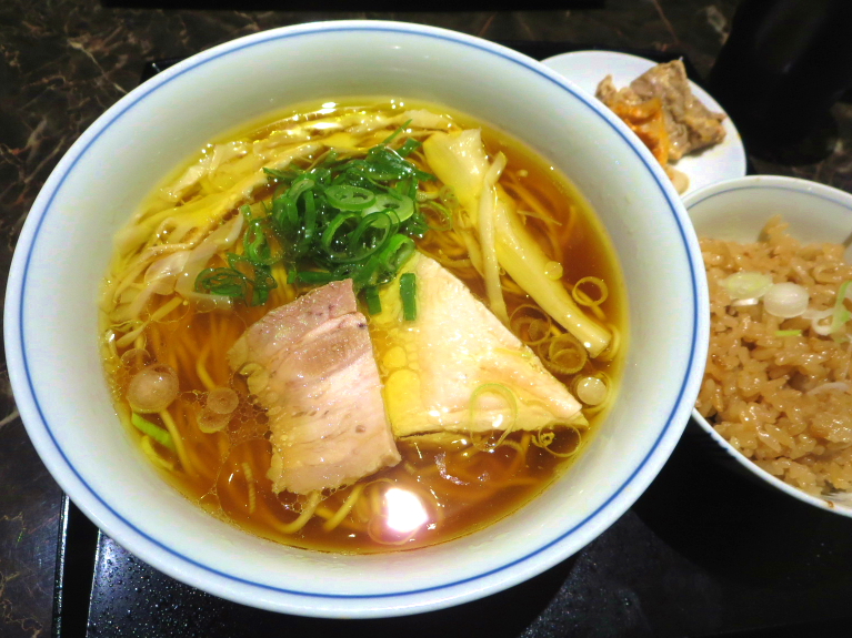対面の対麺は「16才」。純系東京中華そばってキャッチコピーで理解は十分ながら、煮干し、三角海苔、同じデザインの丼に感じる島崎店主のワンラヴ。ハジメマシテの「2号炊き込み御飯」にスープを注ぎ、付け合わせらしき叉焼をはぐはぐ。