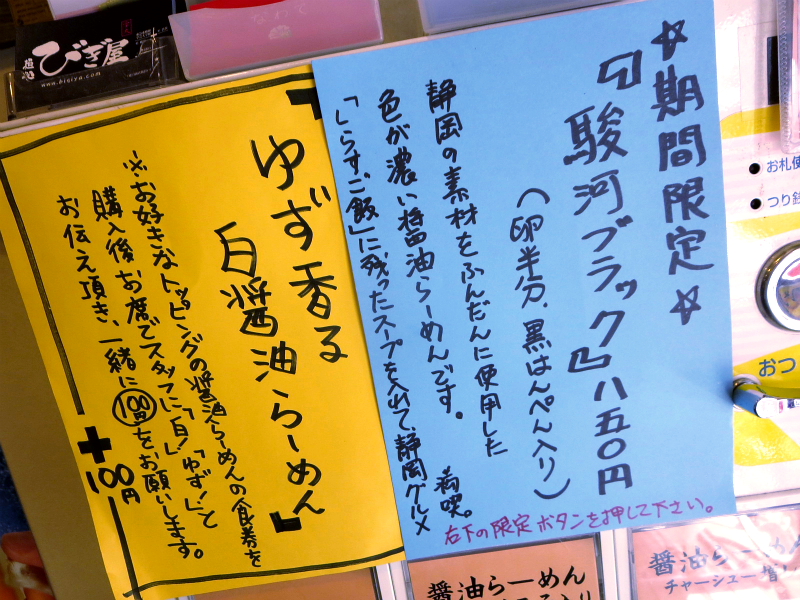 其処彼処で噂の期間限定がまだあるって話。それじゃあ一も二もなく、白も黒もなく「駿河ブラック」をチョイス。てか、拙い経験値ながら、静岡県のブラックとなると遠い遠州を思い出しますゼ。何れにしても店主、張廖氏の地元素材三昧の味。