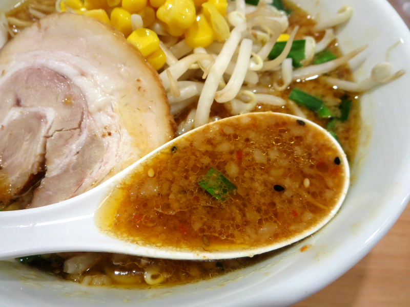 さて、「みそらーめん」。そのスタイルこそ踏襲しているものの、サンプリングの後に再構築された一杯はよもや唯一無二の存在感を放ちますゼ。七種の味噌をブレンドした七色の味がブランド、若干の辛辣がシャープにバインド、加速する箸。