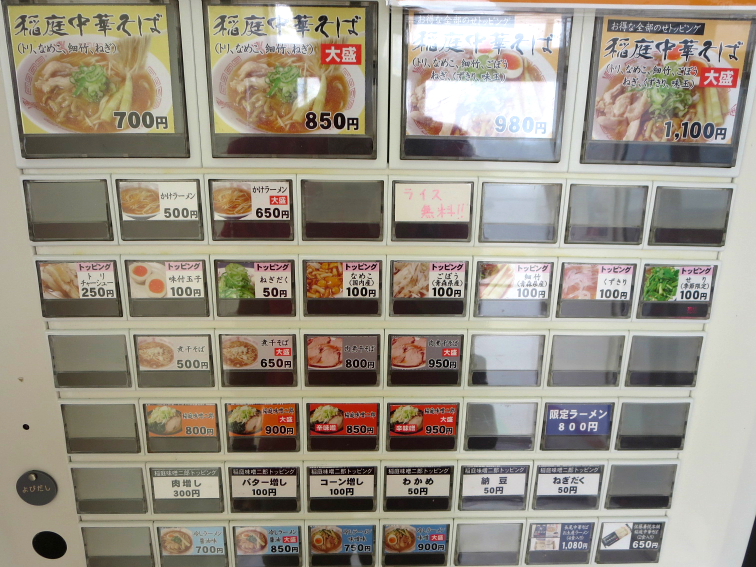 それじゃあと、持ち時間を待ち時間で消費するのもアレなので別店舗へ向かいますゼ。さて、一も二もなく左上の「稲庭中華そば」。都内でもじわじわキてるブランニュー、佐藤養悦本舗の干し中華そば(乾麺)をフィーチャーしたイナチュー。